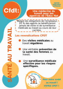 La CFDT demande que le suivi médical de la santé au travail de chaque agent soit assuré au cours de sa carrière.