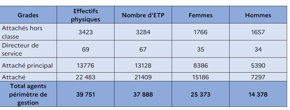 La hors classe est un grade est à accès fonctionnel (GRAF). L’accès y est jugé trop complexe, trop contingenté et peu lisible. Résultat : près de 30 % des attachés principaux sont bloqués en fin de deuxième grade, sans perspective d’évolution.