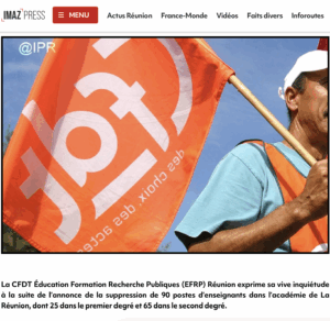 « Suppression de 90 postes d’enseignants à La Réunion : une décision incompréhensible et irresponsable », tribune libre de la CFDT EFRP Réunion, 28 janvier 2026