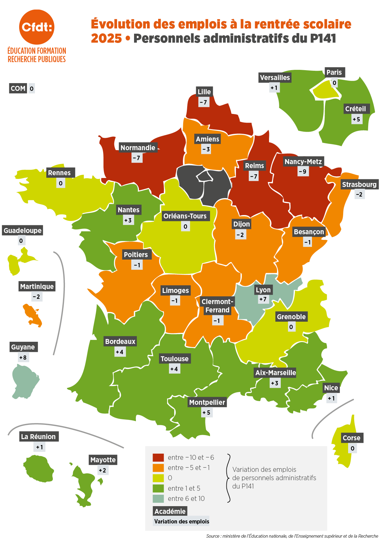Aucune création d'emploi n'est prévue pour 2025 malgré la sous dotation chronique de notre ministère en matière d'emploi administratifs et des fonctions support. Des redéploiements sont cependant envisagés et certaines académies ou services gagnent quand d'autres perdent.
