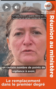 La CFDT profite des discussions sur le déploiement d'une nouvelle application de gestion du remplacement pour porter ses revendications afin d'améliorer les conditions de travail des remplaçants et par ricochet de l'ensemble des personnels des écoles.